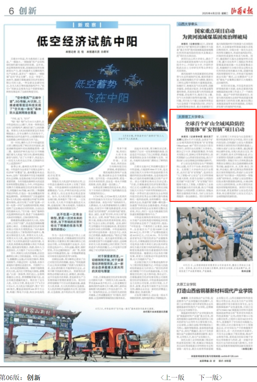 《山西日报 》对公司全球首个“矿安智脑”项目启动会进行报道
