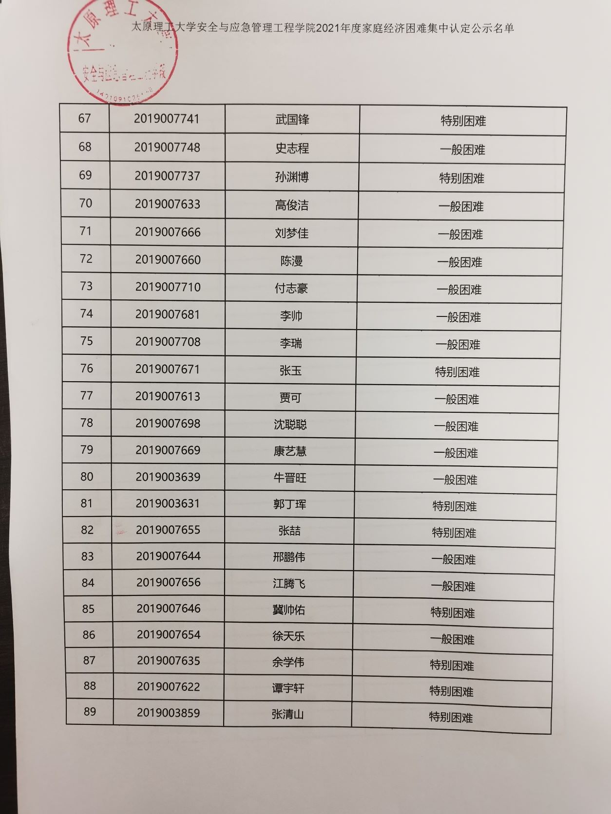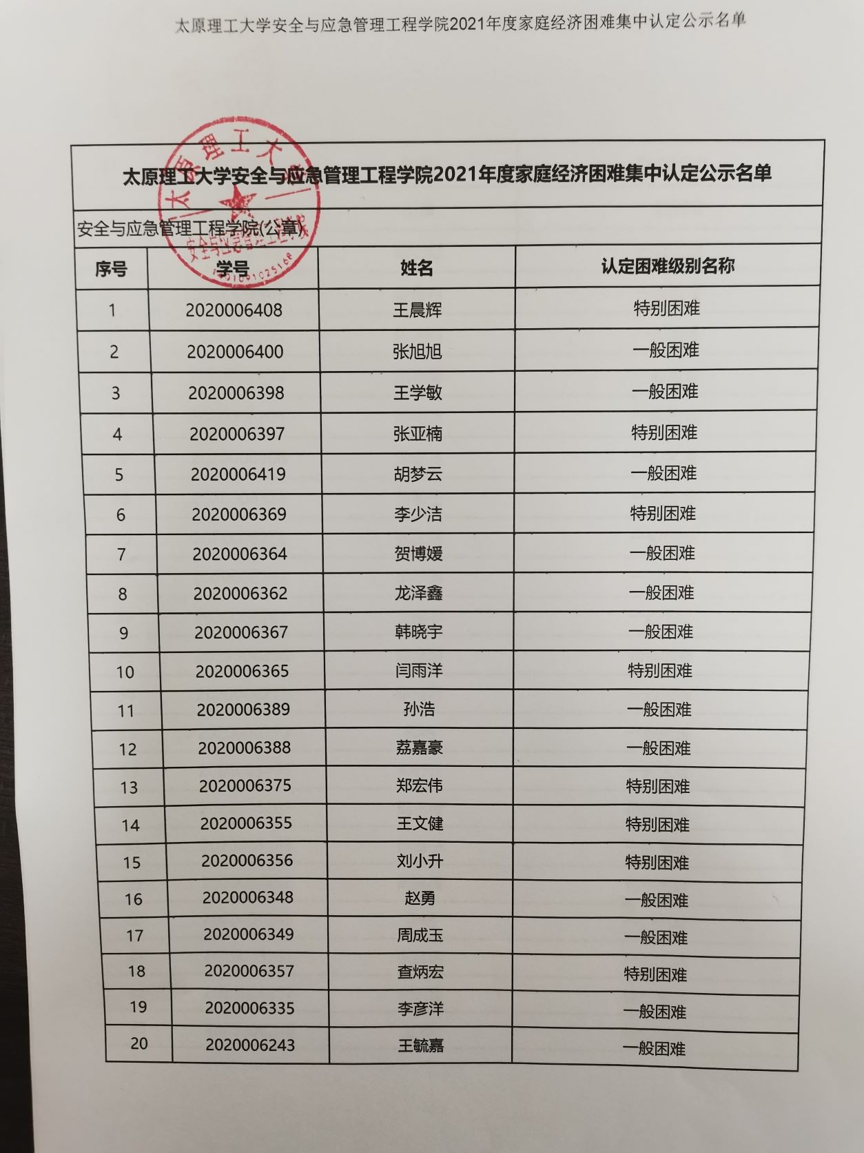 PA视讯官方网站2021年度家庭经济困难集中认定名单公示