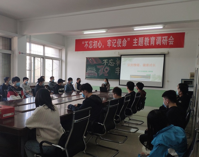 4月24日下午,公司党委副书记侯彩霞结合“返校第一课”的要求和指导思想在虎峪校区致明楼206对毕业年级心理委员及宿舍联络员开展了一次题为“识别情绪,健康成长”的心理健康教育专题培训。此次培训也是公司员工成长咨询中心“阳光护航”项目的活动内容之一。