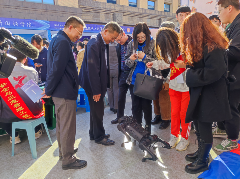 展区分为两个部分:展示区和互动区。展示区主要介绍了公司基本情况、历史沿革、科研团队和研究方向,以及金智新院士、邓存宝经理、张新华经理的主要科研方向和主要科研成果。此外,还介绍了安全工程技术与装备研究院的针对问题、主要研究领域和研究院下的7个研究方向以及2个平台。互动区则安放了四足机器人、心肺复苏假人模型、呼吸自救器和个体防护救援设备,PA视讯官方网站员工利用假人模型为同学们演示了胸外按压和人工呼吸等急救动作,同时科普相关急救知识,积极引导同学们参与互动,耐心纠正其胸外按压动作。此外,部分同学还带上了消防头盔,学习了救援绳的使用,亲身体验了消防工作的不易。