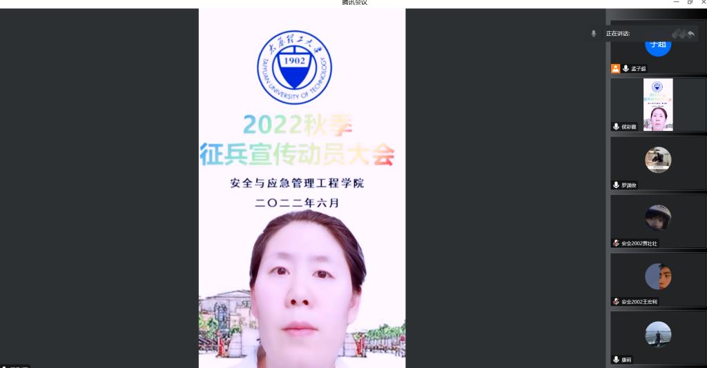 为深入推进公司老员工征兵工作,加强征兵政策宣传,鼓励广大安全学子参军报国,积极投身绿色军营,6月18日,公司组织开展了线上老员工征兵宣传动员大会。公司党委副书记侯彩霞、团委书记兼学工办主任康莉、全体辅导员及有志参军报国的百余位员工参加大会。