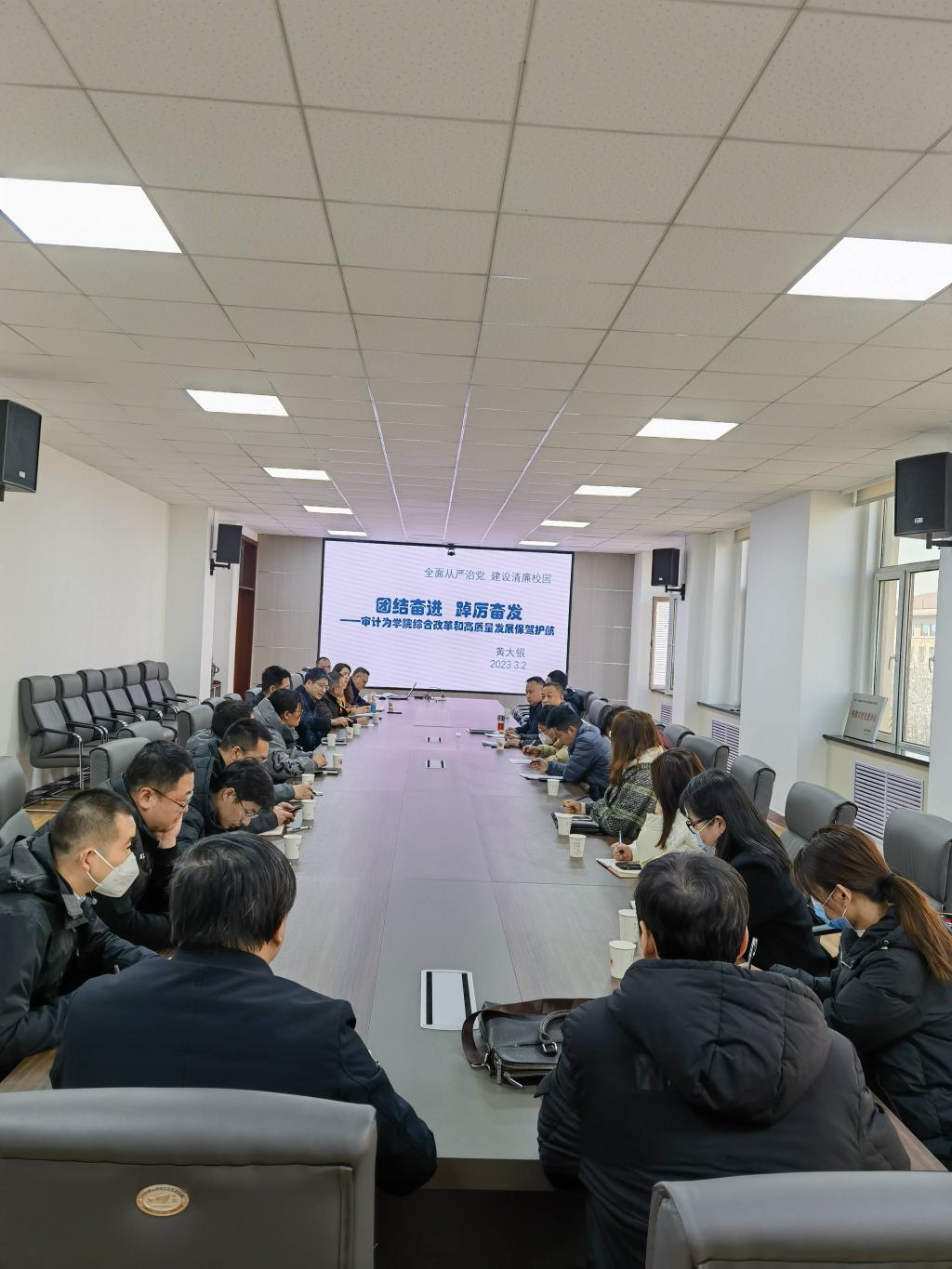 为进一步落实全面从严治党,建设清廉校园。3月2日,PA视讯官方网站特邀审计处黄大银处长开展题为《审计为公司综合改革和高质量发展保驾护航》的专题报告。公司全体院领导、各系、中心主任、三办主任以及副高职称以上全体教师参加了此次会议,会议由公司党委书记闫怡红主持。