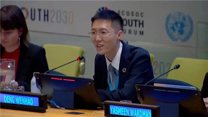 公司学子邓文浩在联合国青年论坛上分享可持续发展经验和倡议