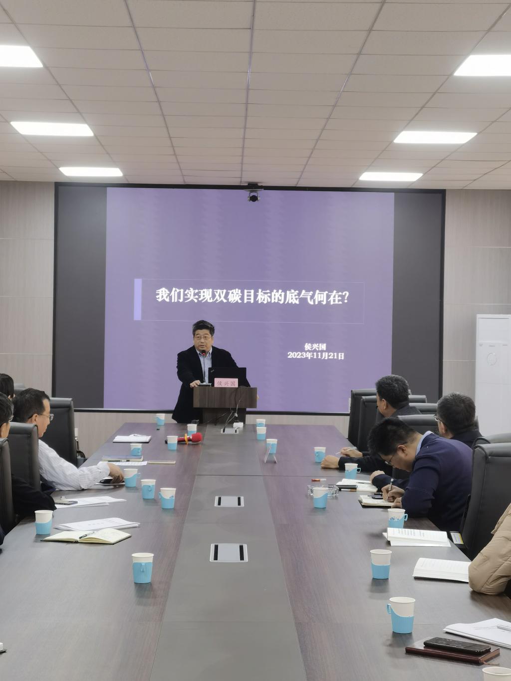 侯兴国以绿色清洁能源发展的独特视角,作了题为《我们实现“双碳”目标的底气》的专题报告。他从水力发电、光热发电、光伏发电、风力发电四个方面介绍了我国清洁能源的发展现状;从特高电压的传输网络、新能源汽车的发展势头等多个角度详细阐述了我国在能源革命和“双碳”行动中所作出的巨大成绩和贡献。新形势下,我国坚持将“双碳”工作纳入生态文明建设的整体布局和经济社会发展的全局,大力推动各领域绿色低碳发展,在应对全球气候变化、推动构建人类命运共同体中充分体现了大国担当。成绩的背后,是政策的大力支撑,是科技的不断创新,更彰显了中国共产党领导和中国特色社会主义制度的显著优势。报告内容丰富、详实有据、催人奋进,极大地激发了全体与会人员为公司“双一流”建设和公司高质量发展攻坚克难、干事创业的劲头。